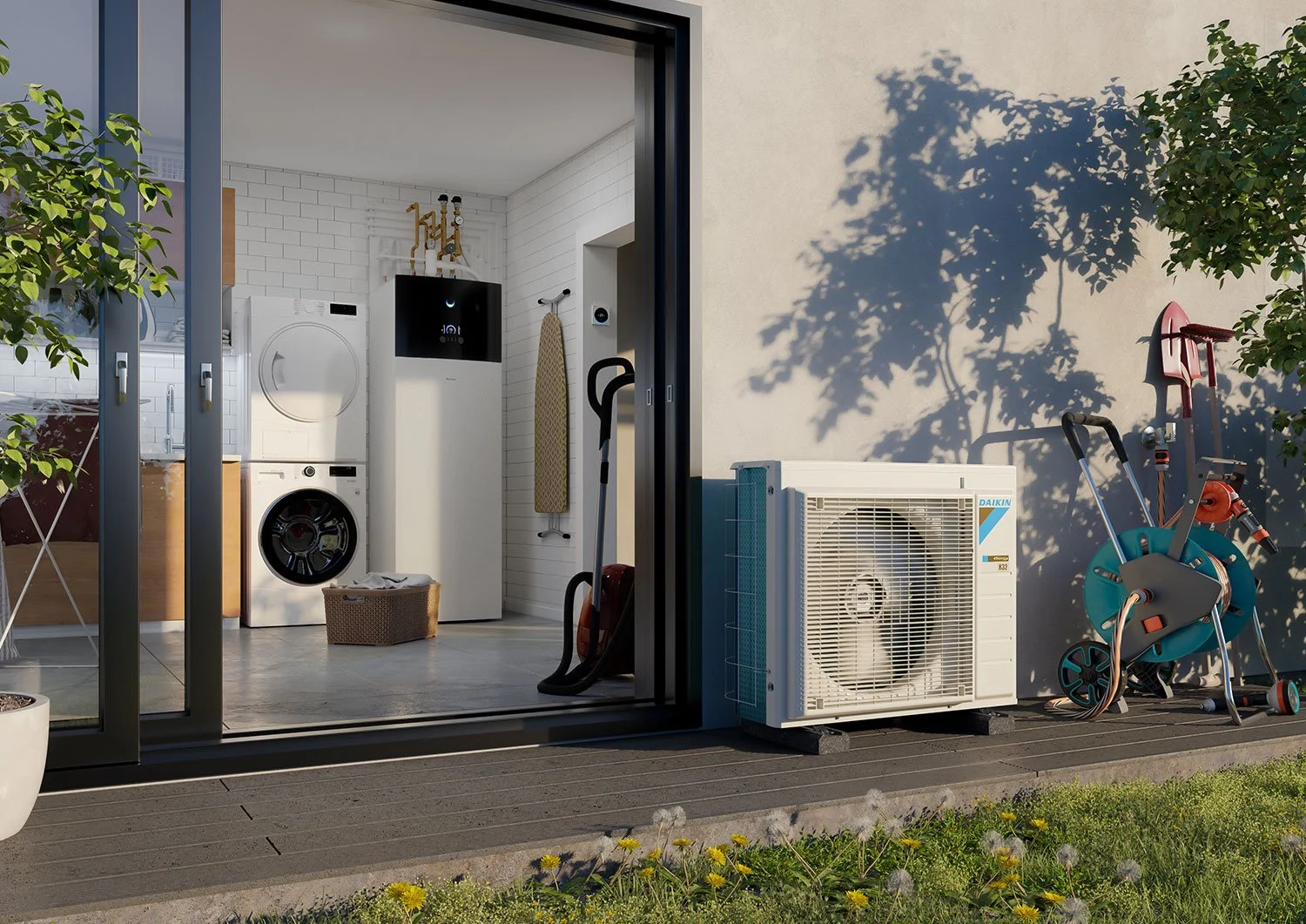 Altherma 3 kommer i to varianter: Gulvmodellen er en alt-i-ett-løsning med innebygd varmtvannsbereder og styringspanel – ideell for nybygg og lavenergihus. Veggmodellen gir samme effektive oppvarming, men uten integrert tank, slik at den kan kombineres med en ekstern varmtvannsbereder for mer fleksibilitet.